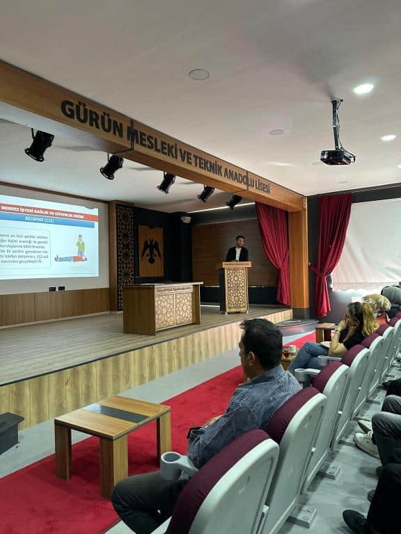 Gürün Mesleki ve Teknik Anadolu Lisesi’nde, öğrencilerin mesleki gelişimlerine katkı sağlamak amacıyla “İş Sağlığı ve Güvenliği” eğitimi düzenlendi. Eğitimi, Elektrik-Elektronik Teknolojisi Alan Şefi Aydın Ocakbaşı verdi.